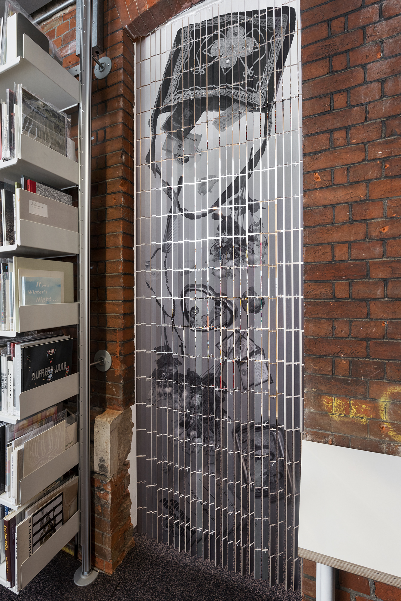 The beaded curtain becomes a portal through this archival material, an invitation to disrupt the static image and a way to enter an alternate narrative where chronologies, fictions and symbols disarrange, entangle and merge.